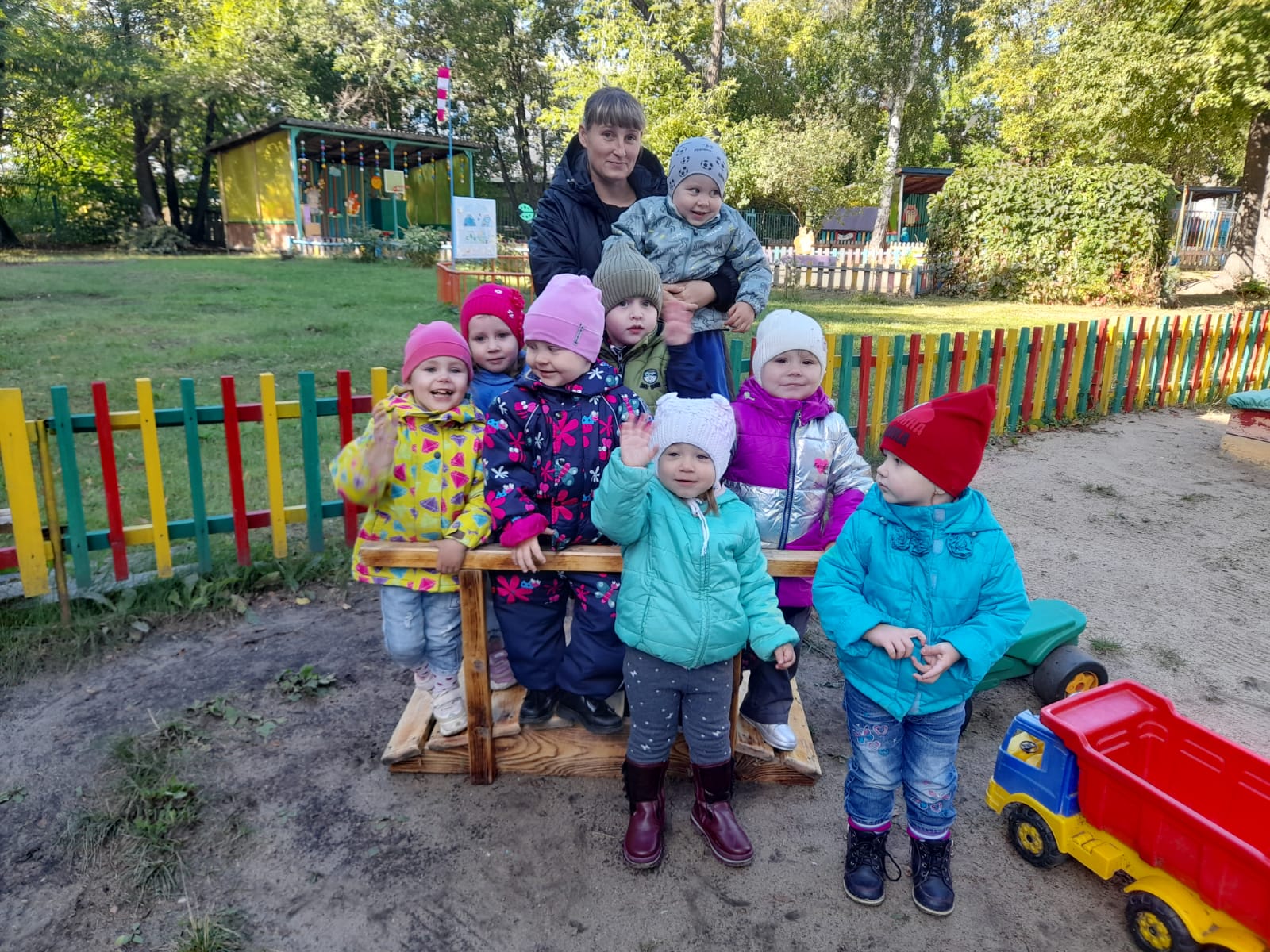 время прогулки они посетили детскую игровую площадку, где каждый нашел